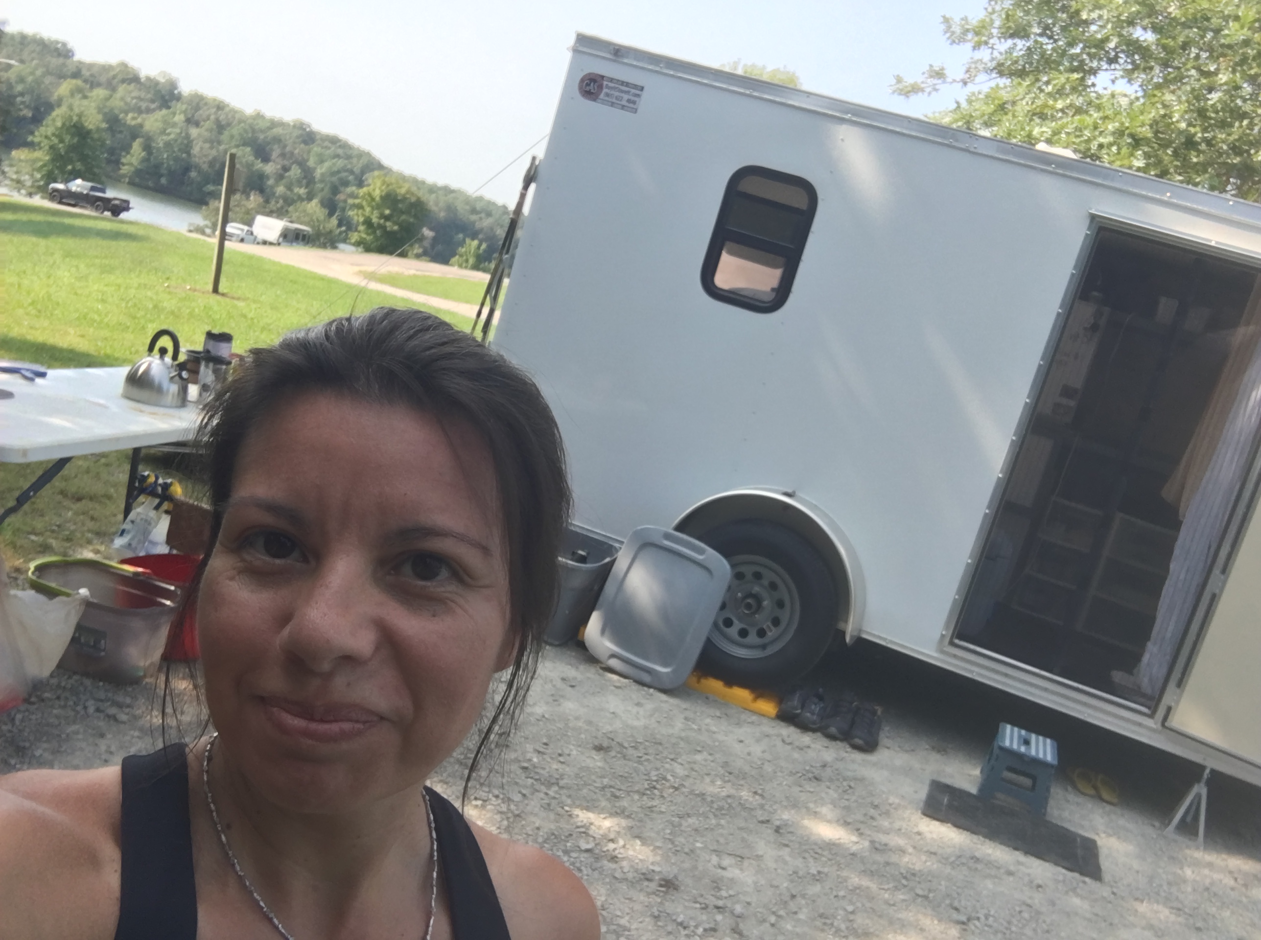 We definitely had an experience getting to this location. It was a five-hour drive and a bit nerve-racking for us first-timers towing a 6×12 cargo trailer with our CRV. We are still feeling out and learning all the sounds and movements that come with towing. When it came to those mountain passes that were a surprise to the route, ole Bessie handled like a champ and took to those inclines at a steady pace screaming RPMs!